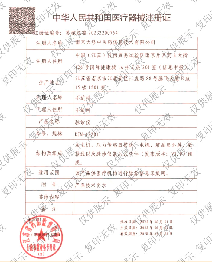 適用范圍:該產(chǎn)品供醫(yī)療機(jī)構(gòu)進(jìn)行脈象信息采集用。