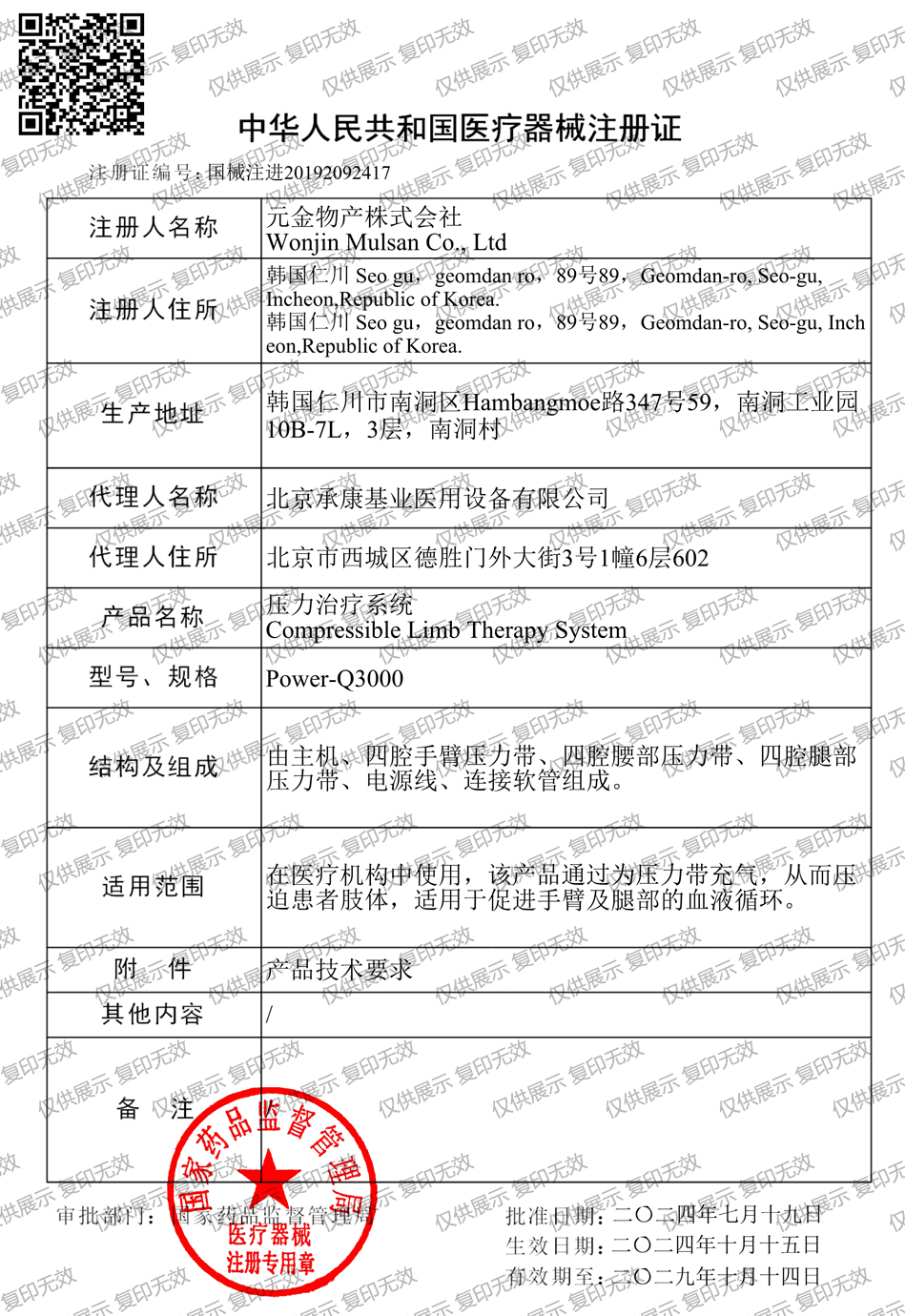 適用范圍:在醫(yī)療機構(gòu)中使用,該產(chǎn)品通過為壓力帶充氣,從而壓迫患者肢體,適用于促進手臂及腿部的血液循環(huán)。